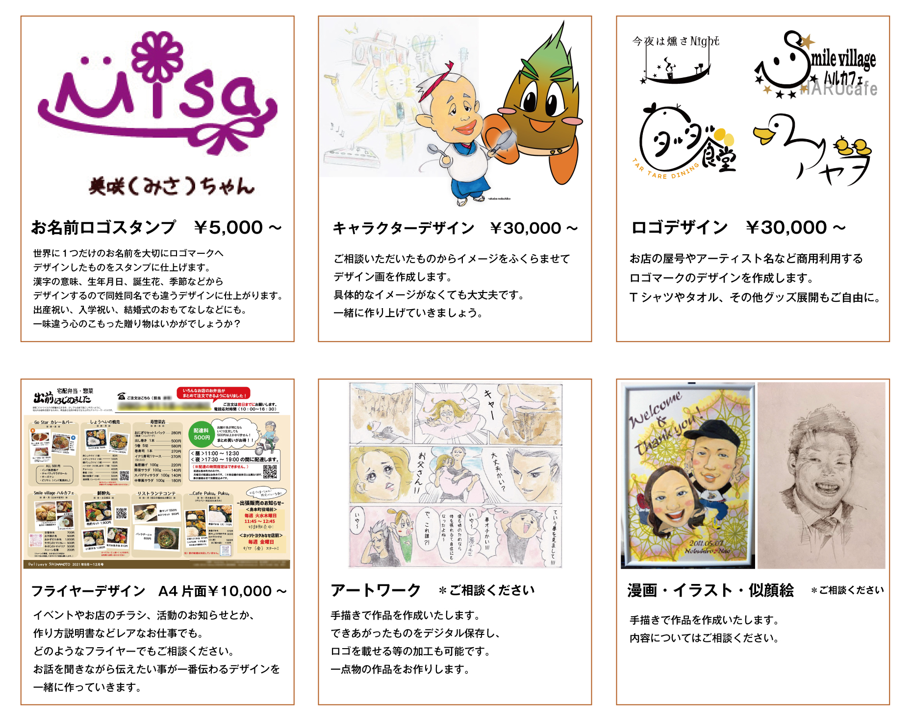 チラシやプライスカード、似顔絵、イラスト、キャラクターデザインなど
